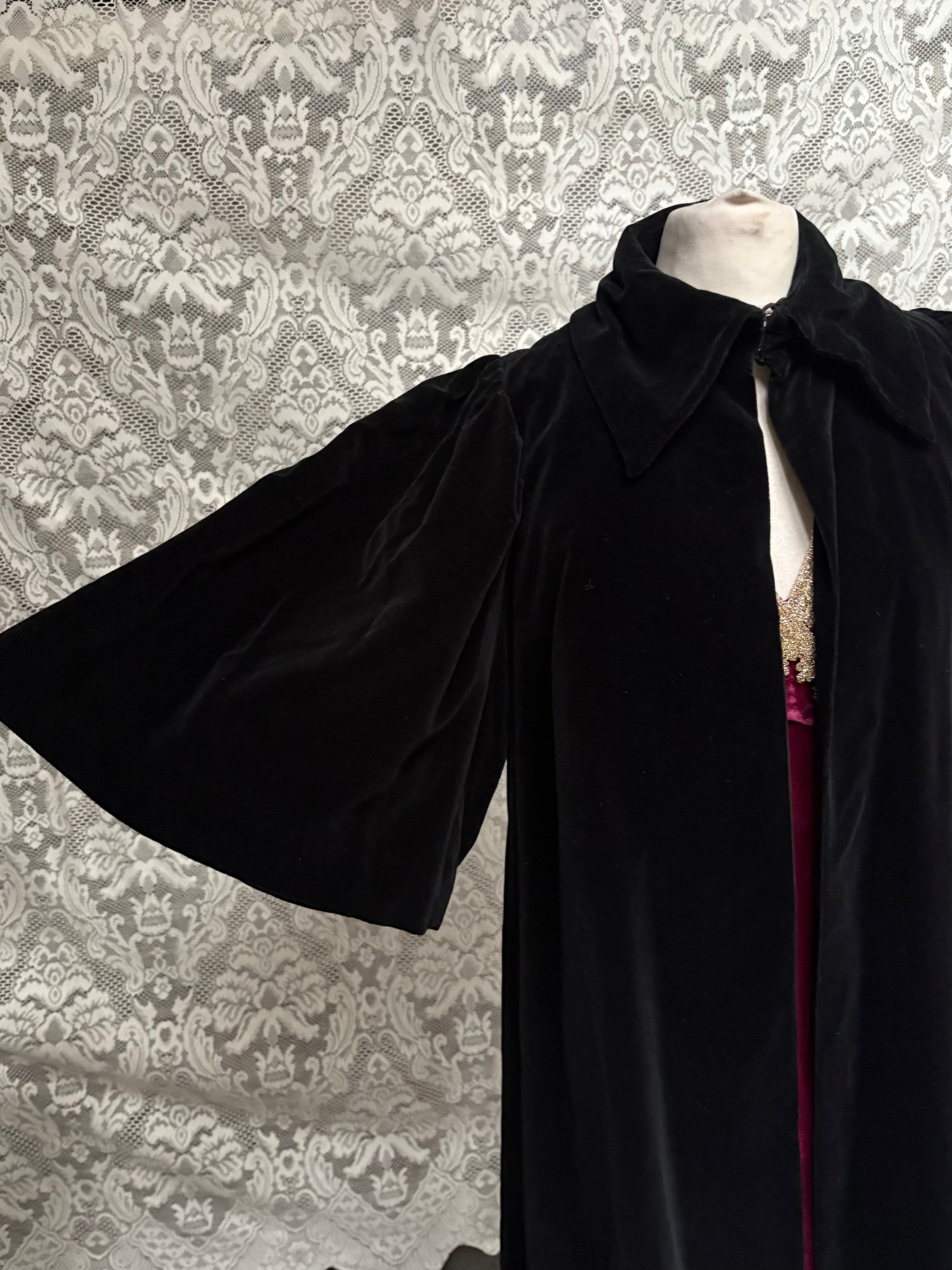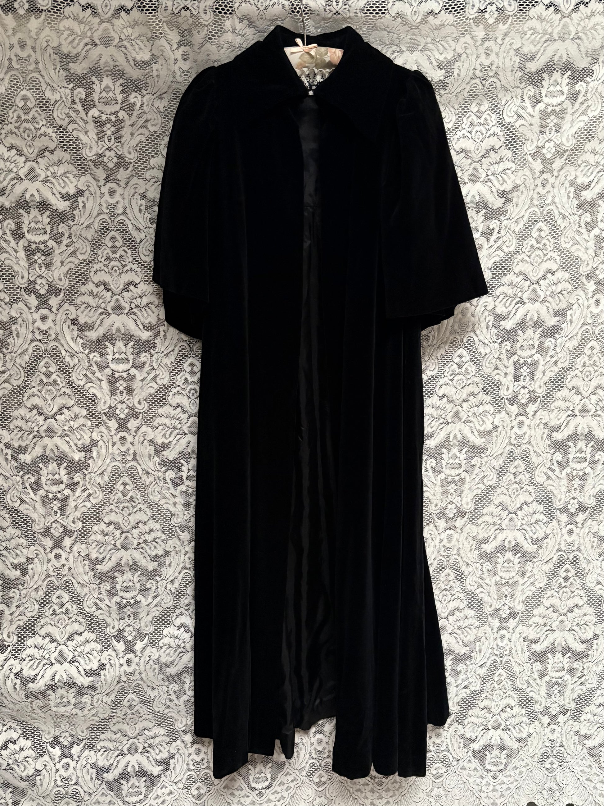 Vintage 1960s plush velvet maxi coat with cropped cape sleeves