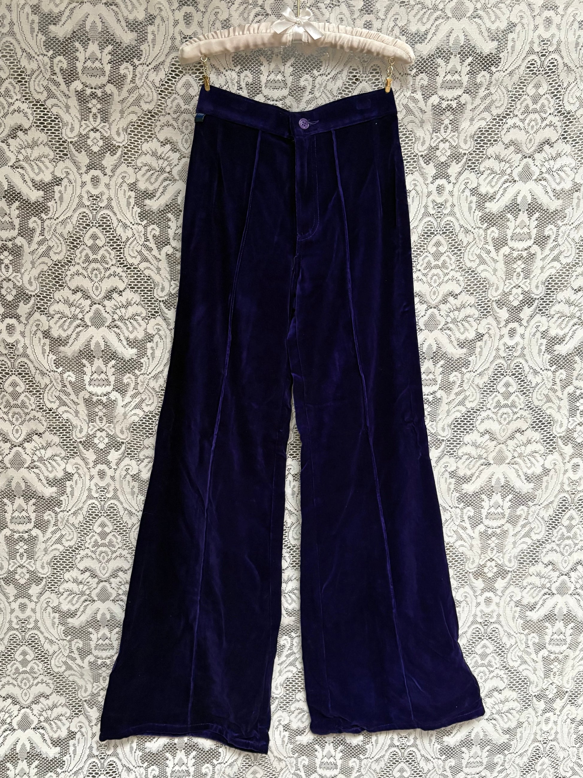 Vintage 1990s does 70s deadstock purple velvet flared trousers