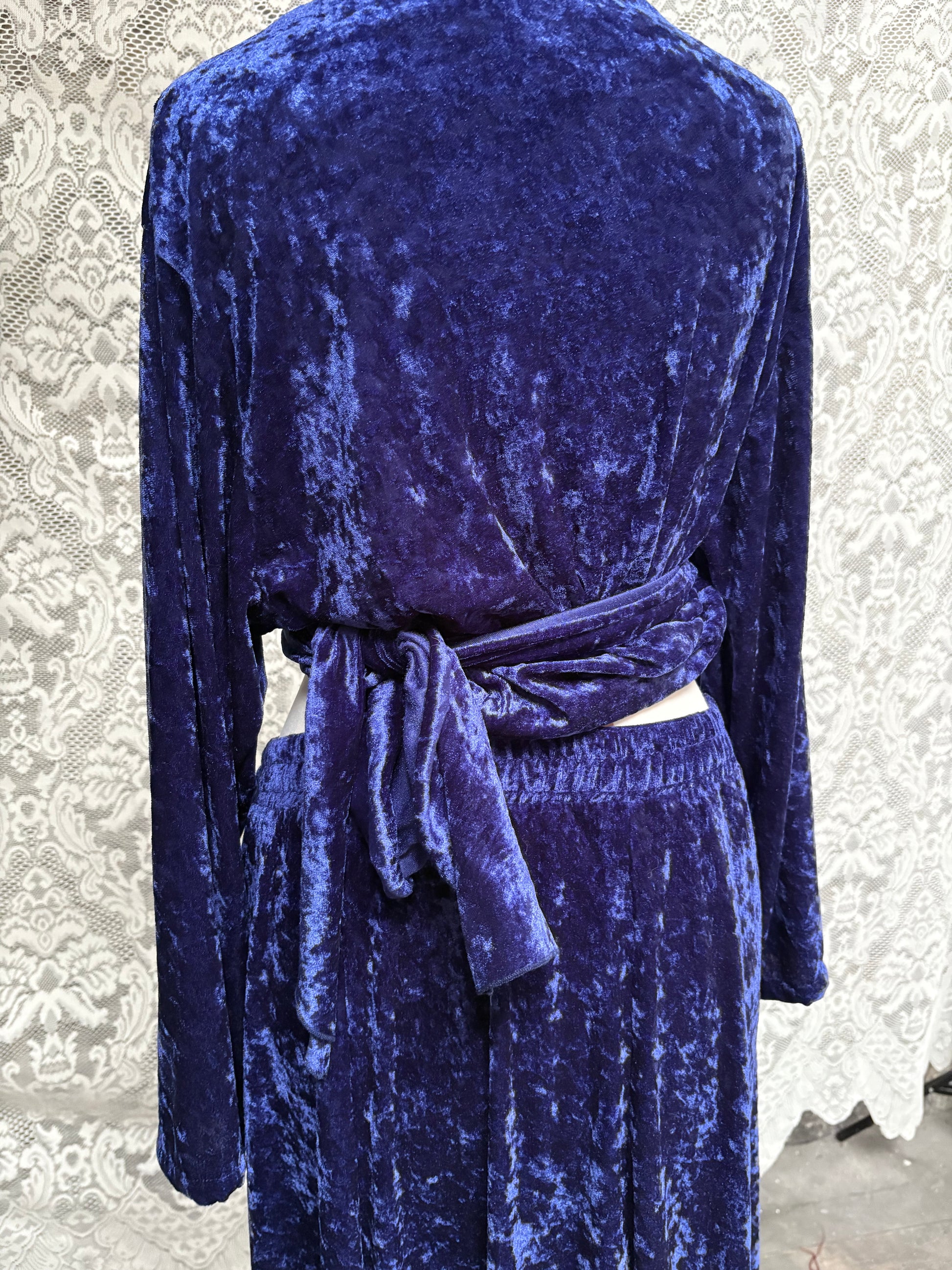 Vintage 1990s blue velvet wrap around top and skirt two piece