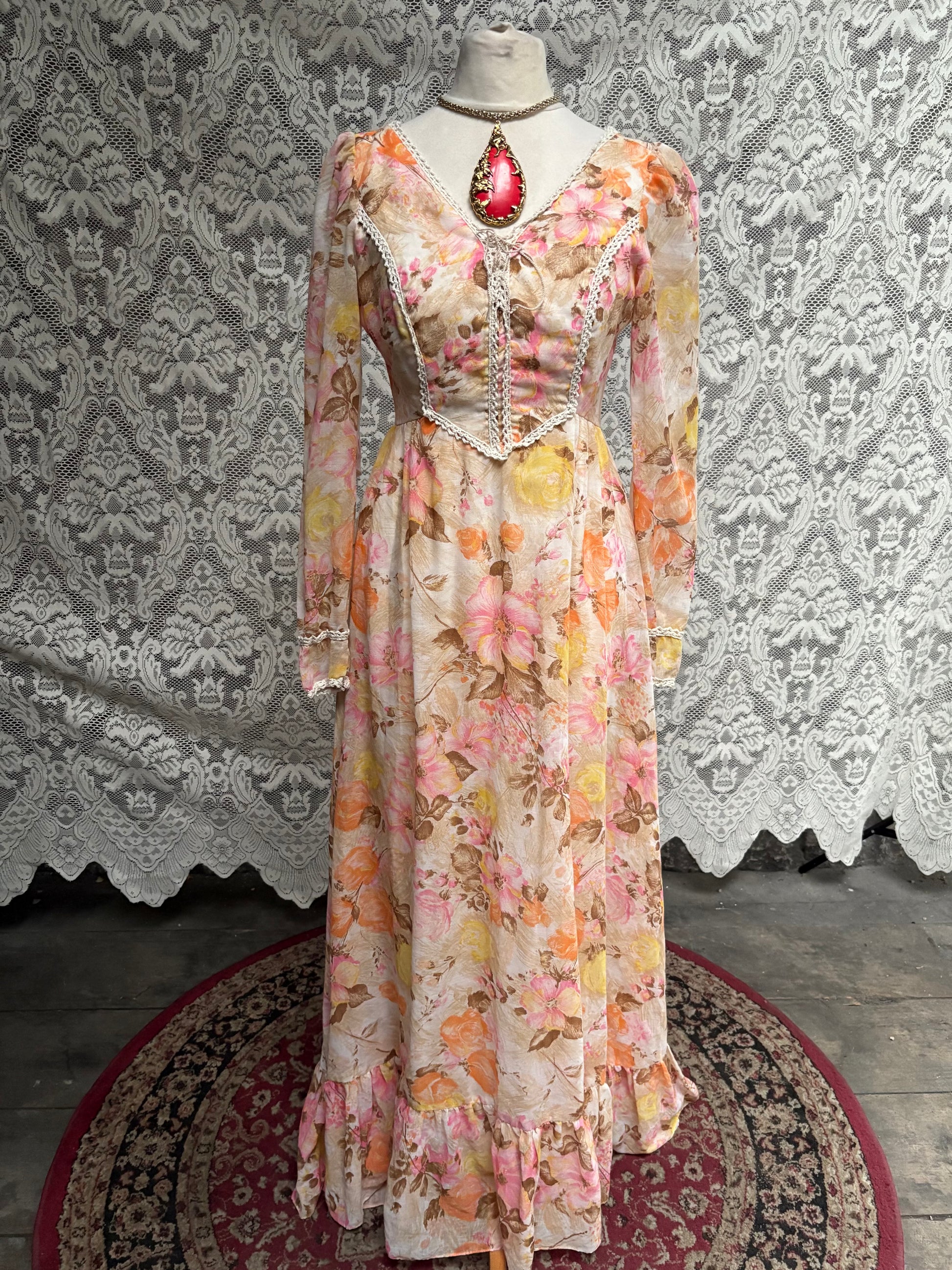Vintage 1970s Gunne Sax Style floral prairie maxi dress.