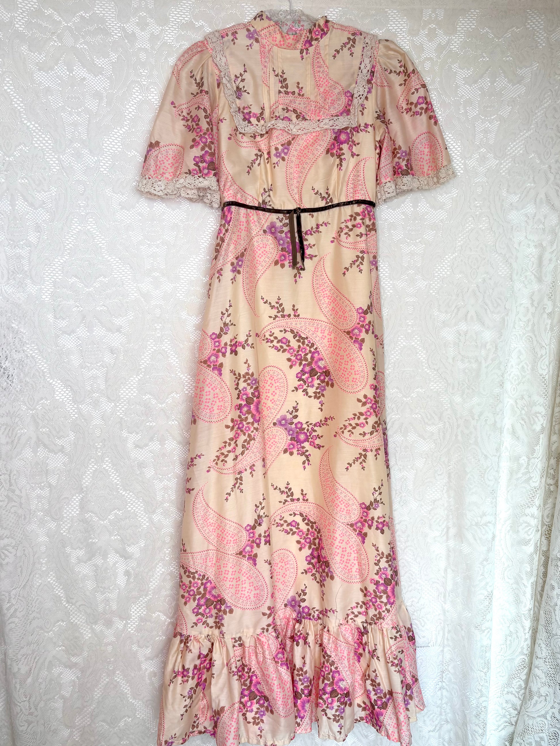 Vintage 1970s floral prairie cotton maxi dress
