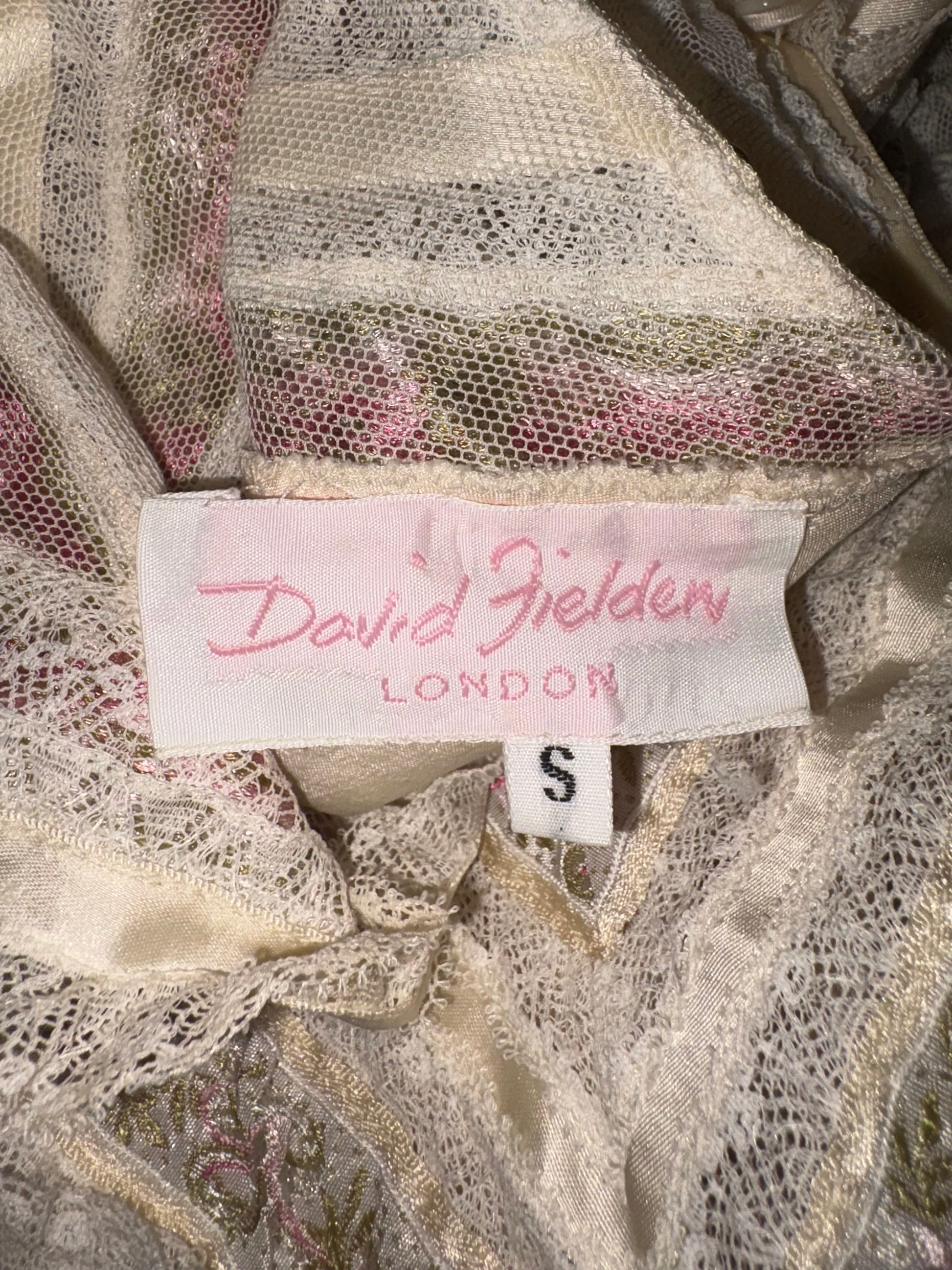 Vintage very rare 1980s silk embroidered romantic blouse by designer brand David Fielden
