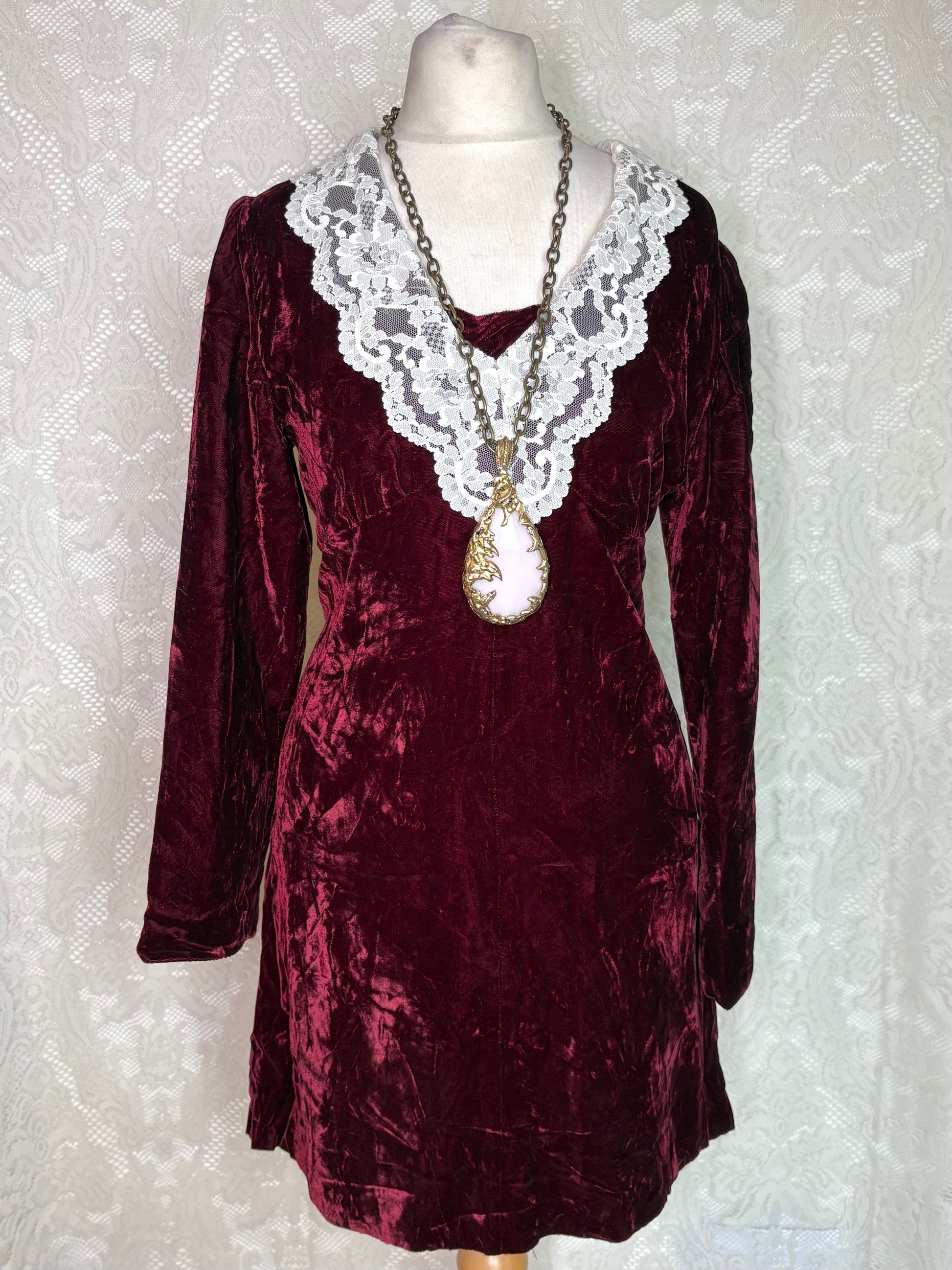 Vintage 1960s cotton velvet mini dress with lace detail
