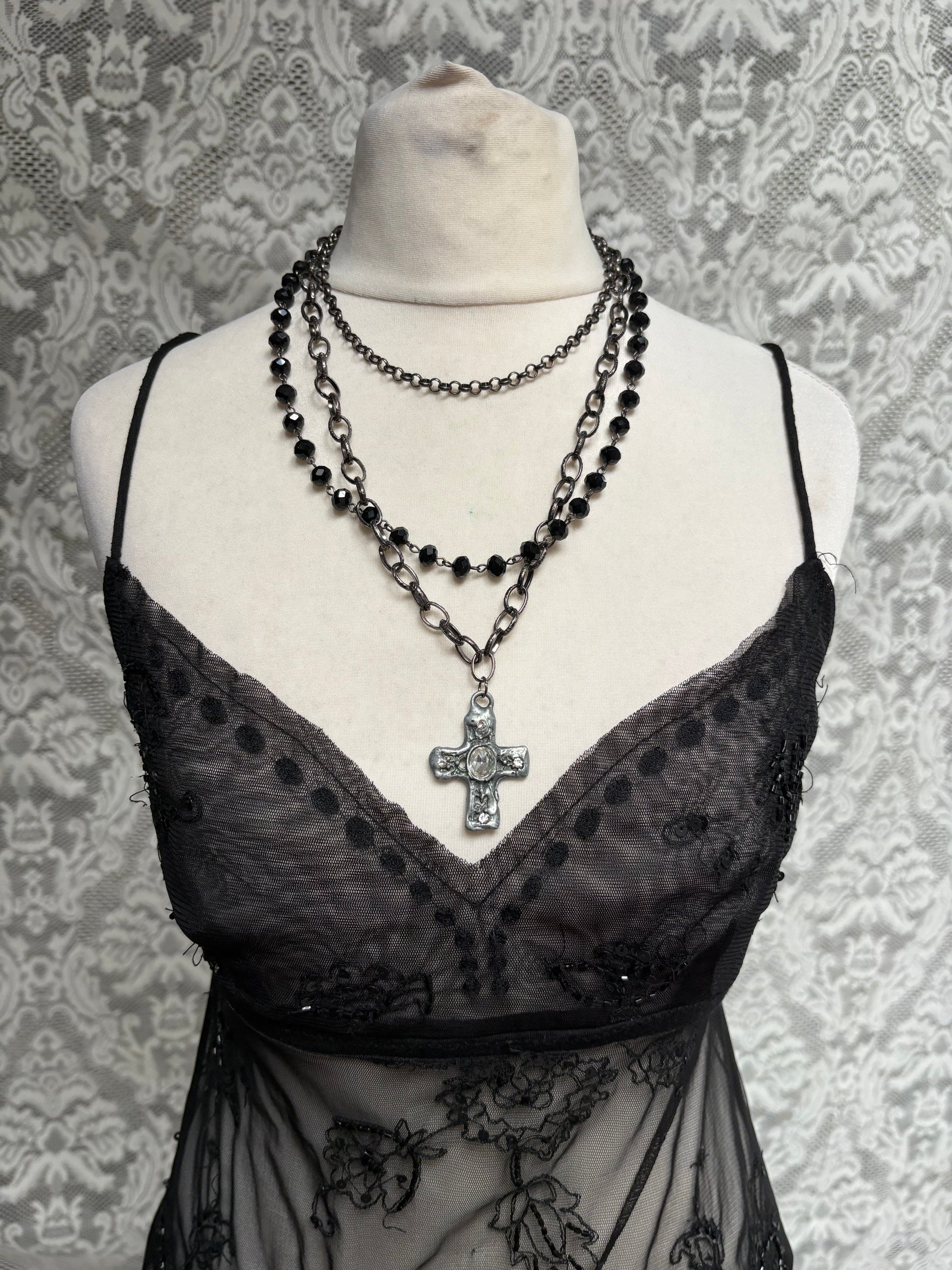 Vintage style layered crucifix necklace